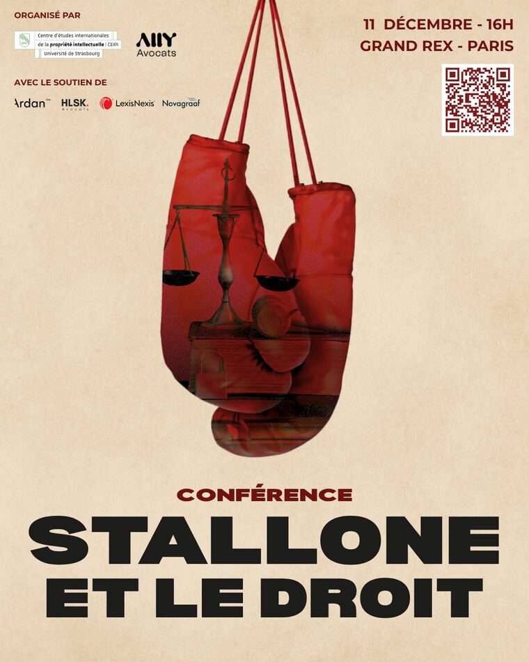 Le droit et le cinéma se rencontrent sur le ring ! Le jeudi 11 décembre à 16h, le CEIPI et Ally Avocats investissent Le Grand Rex pour une conférence unique. Après « Friends & le droit » et « James Bond & le droit », cette nouvelle édition vous invite à explorer l’univers de Sylvester Stallone. À travers son oeuvre, nos intervenants
