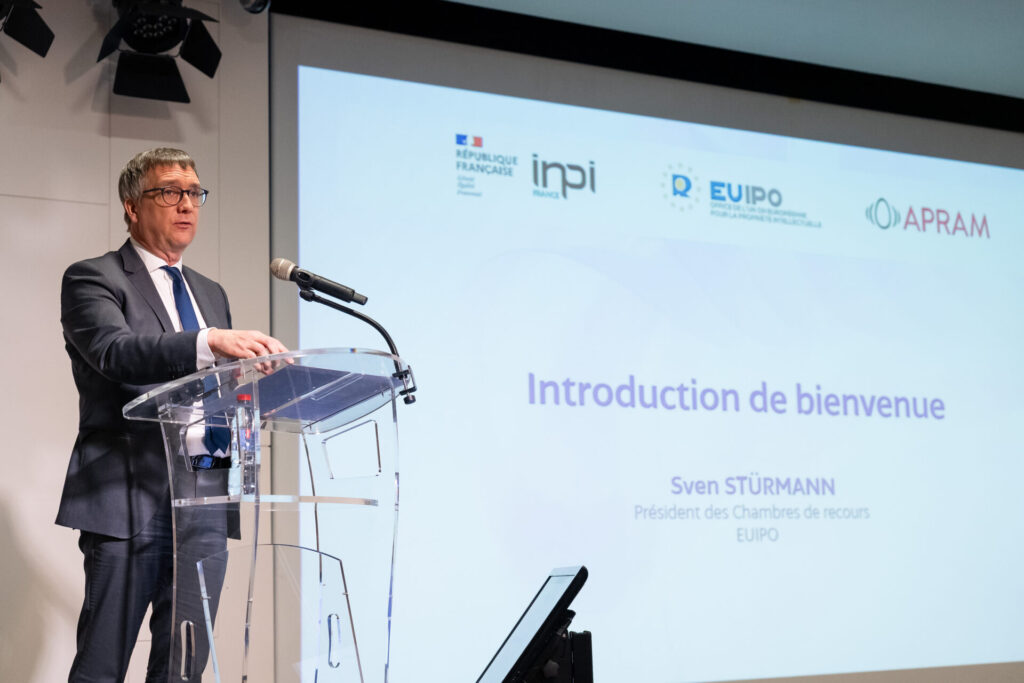 Une conférence co-présidée par PASCAL FAURE, Directeur général, INPI, SVEN STURMANN, Président des Chambres de recours, EUIPO et ANNE-SOPHIE FRERE, Présidente, APRAM